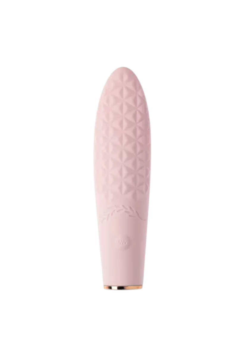 Raya can be used as a clitoral, g-spot or a nipple vibrator. Each side has a different texture as well, meaning you get double the fun from this toy. It's an innovation that will leave you breathless. One side has a light raised ribbing texture while the other side has a raised geometric pattern.